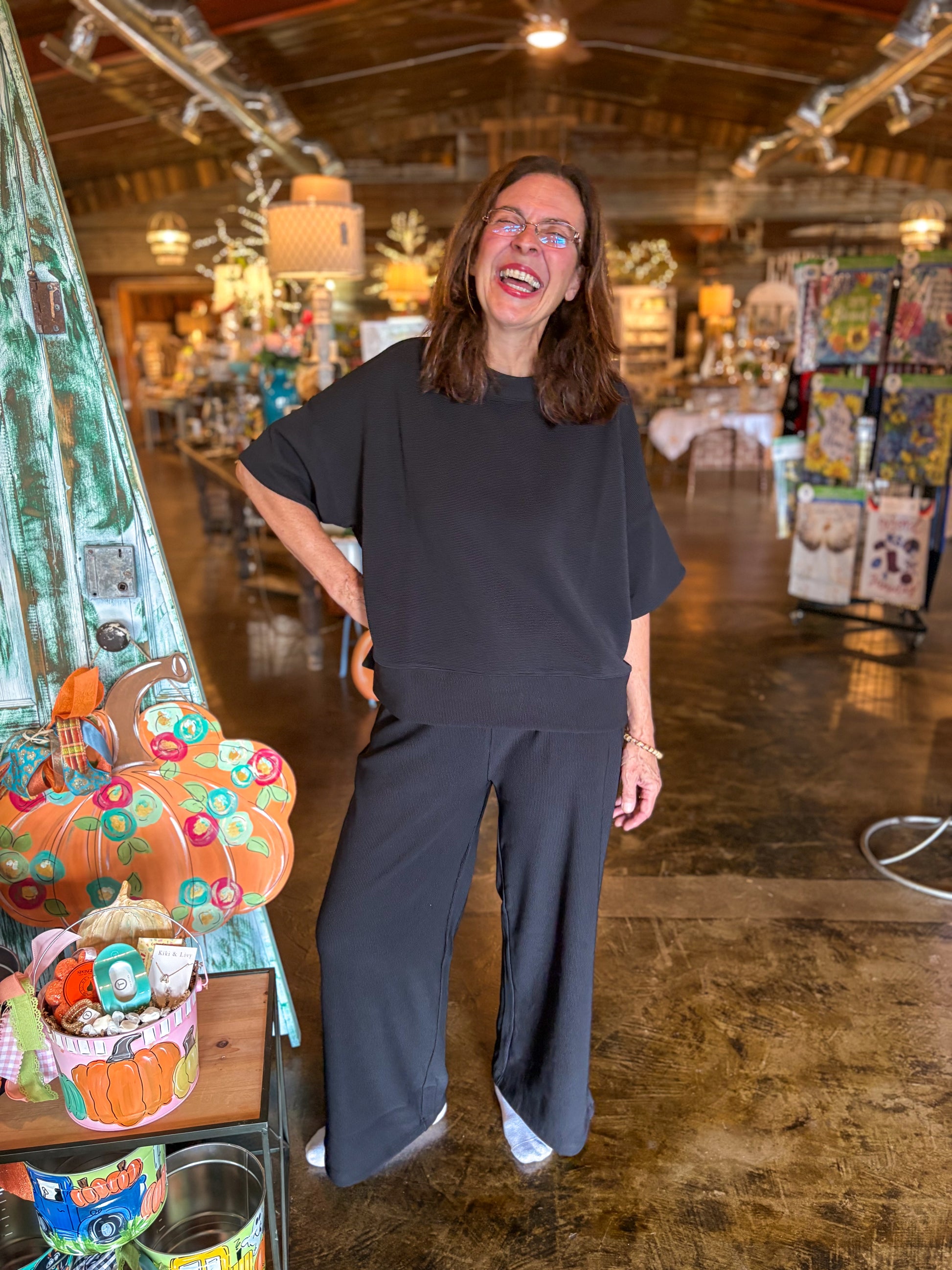 Stay stylish and comfortable with our Marcie Ribbed Pants and Top Set in Blue. The ribbed design adds texture and the set is crafted from high-quality material for durability. Perfect for any occasion, this set is a must-have for any fashion-forward individual.